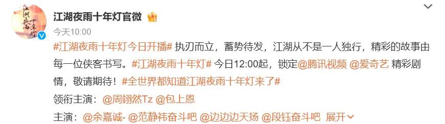 反观《江湖夜雨十年灯》,空有武侠的外壳,没有武侠的灵魂,连最基本的叙事和表演都做不好,自然无法得到观众的认可。