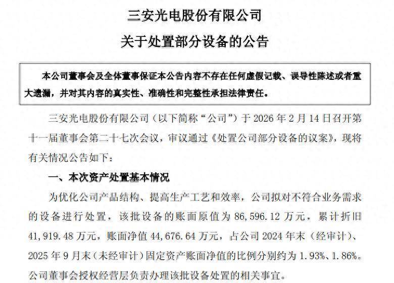 2月24日配资炒股评测网,三安光电披露《关于处置部分设备的公告》。