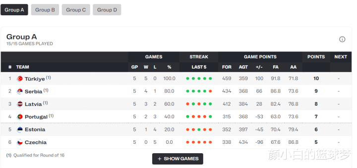 这场比赛后土耳其男篮五连胜锁定A组第一的席位,塞尔维亚则是A组第二,拉脱维亚A组第三,葡萄牙A组第四。