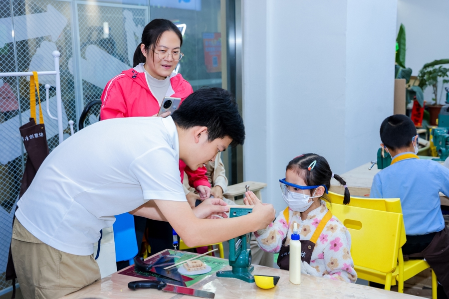 启动仪式外场,持续开放的“家+”系列活动,形式多样、内容丰富、互动性强,吸引了全市亲子家庭踊跃参与。“家+非遗”活动,开设了非遗敦煌泥板画、非遗掐丝珐琅、非遗绒绣体验等亲子体验,让参与家庭感受亲子协作、共同创作的温情与乐趣;智慧健康驿站的“家+健康”项目中,来自国妇婴、瑞金医院的专家们现场坐诊,为参与家庭提供了便捷的健康咨询服务;“家+公益”爱心宝贝义卖活动中,孩子们在地勘公园里展示并售卖义卖品,传递公益温情;“家+环保”展区汇集了亲子家庭绘画制作的优秀自然笔记作品,展示了亲子家庭观察大自然的成果;“家+运动”板块的航模制作、射击体验,让孩子们在互动中增强国防意识、在运动中学习成长。